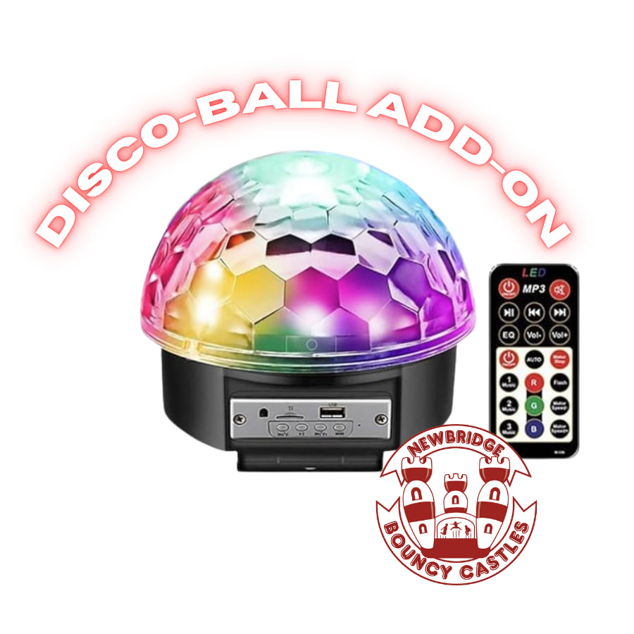 Book your bouncy castle hire in Newbridge with the Disco Ball Light/Music add-on today and get ready to throw the ultimate disco party!